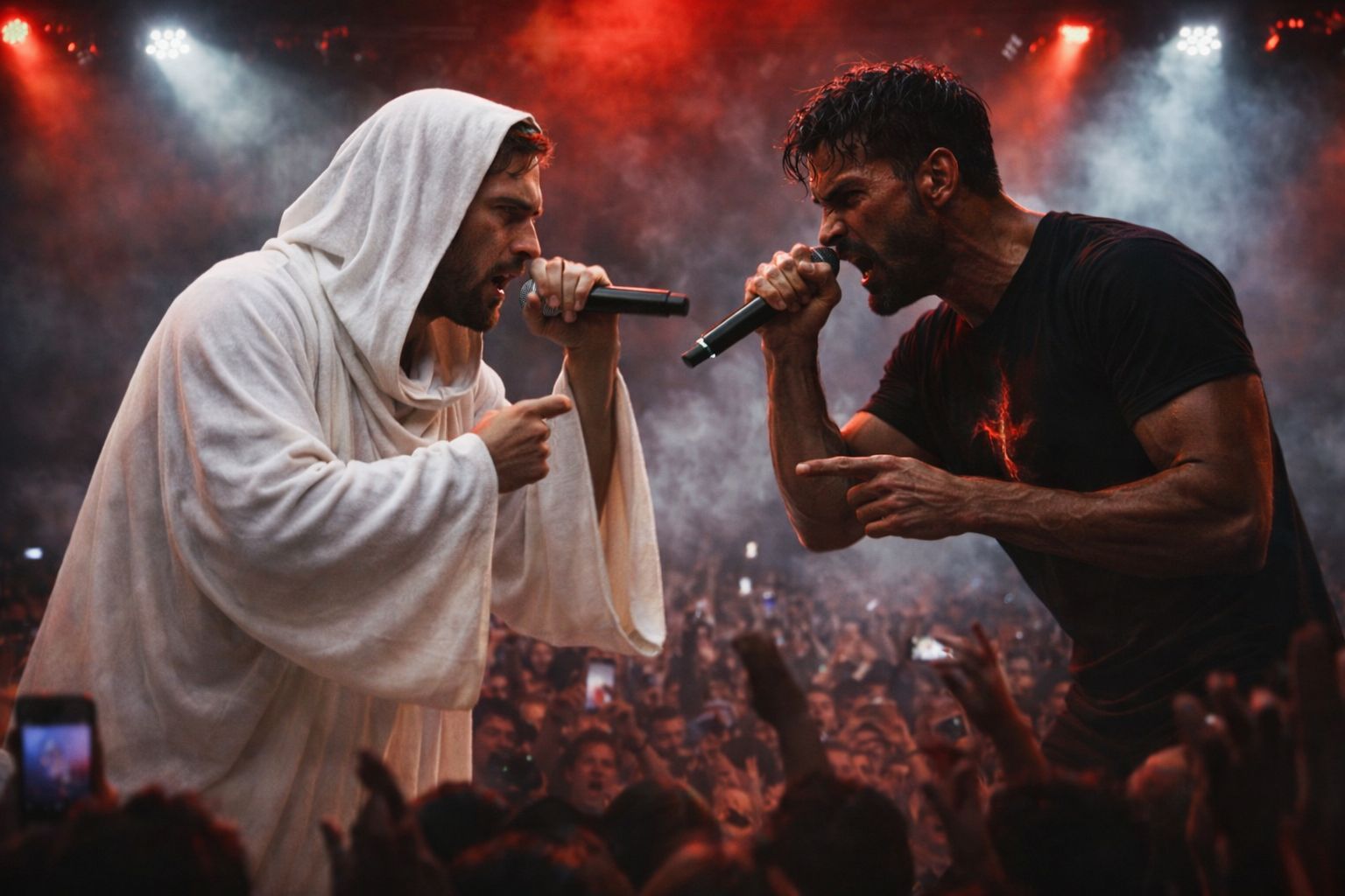 Aggressive battle rap duel, intense post-apocalyptic Thunderdome energy, Turntablism madness, [Genre: Rap, Cinematic Hip-Hop]