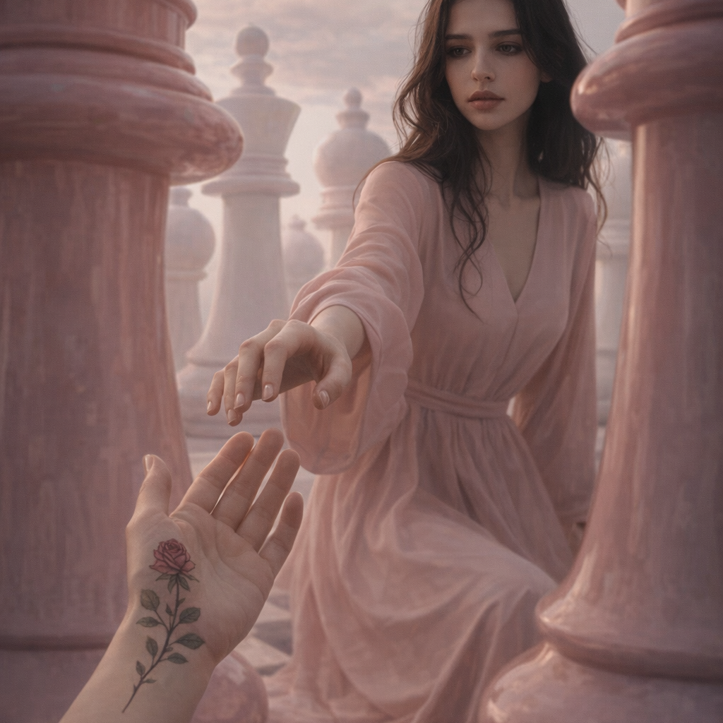 Visual Atmosphere: midnight train, diner neon, storm-lit horizon, feather carried in dust and rain