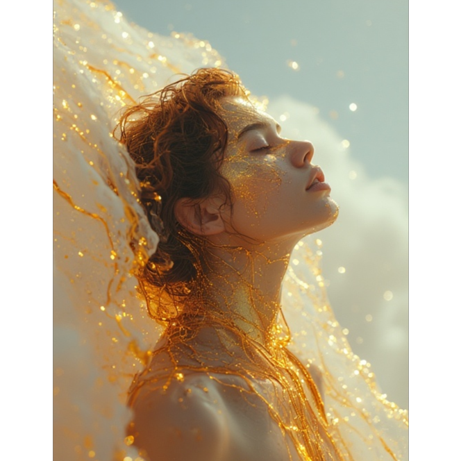 Intro: Bell-like keys with heavy reverb and shimmer, like light reflected through fog, Percussion: Barely there — soft brushed snares and reversed cymbals, creating the illusion of time folding in, Synths: Layered airy pads and deep drones to create a floating, weightless texture, Bridge: Minimal instrumentation — only her voice, a faint heartbeat pulse, and a ghostly reversed vocal layer, Outro: Long decay of reverb until only a faint tone remains — like the edge of hearing, Vocal Style: