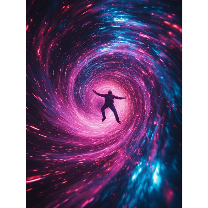 Beat: Tight kick and snare pattern with syncopated bassline slightly metallic percussion for tension, Bass: Dirty analog bass with distortion, sidechained to the kick, Synths: Sawtooth arpeggios that swell and drop with the chorus — mimicking gravitational waves, Bridge: Sparse just bass and breathing samples before the beat slams back in, Outro: Glitching delays and reversed echoes fade into silence, Vocal Style:
