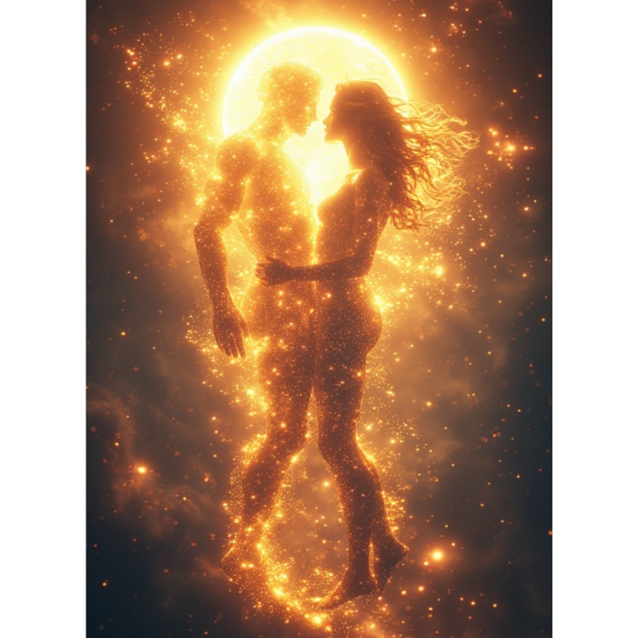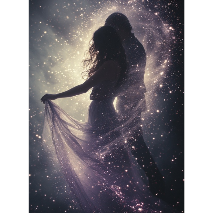 Intro: Low cosmic hum, sub-bass heartbeat, subtle space noises (winds, static, solar flares), Verses: Sparse pads, distant metallic percussion, whispers of the other voice layered subtly, Pre-Chorus: Gradual layering of analog synth chords, vocal doubling, delay trails, Chorus: Full wall of sound — lush pads, soaring synth leads, rhythmic sub-bass pulses, layered harmonies, Bridge: Vocal call-and-response, processed with reverb and slight distortion to blend the voices, Outro: Everything collapses into static, heartbeat fades, a final single sustained synth note lingers like dying light, Vocal Style: