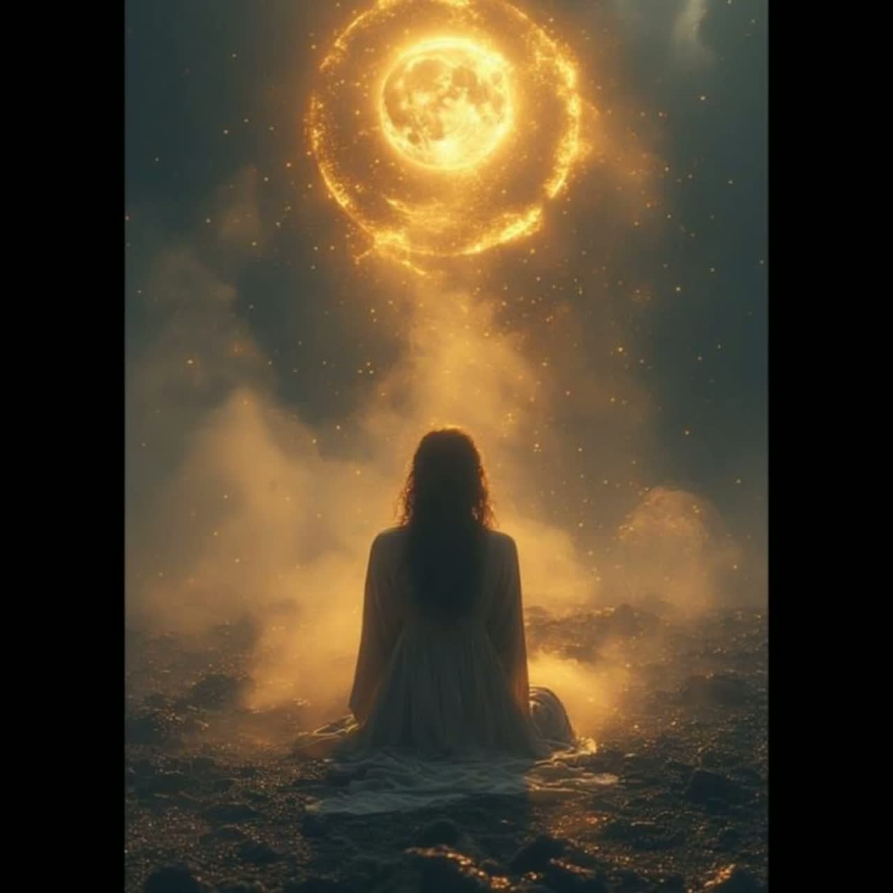 Dark ambient / ethereal gothic / ritual electronica, Tempo: ~68 BPM — slow, trance-like pulse, Key: C# minor (deep, sacred resonance), Sound Design:
