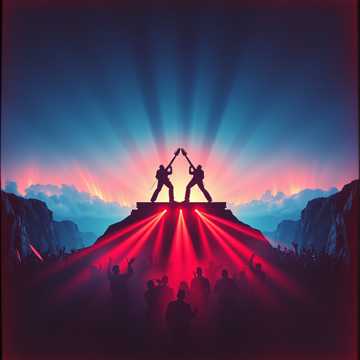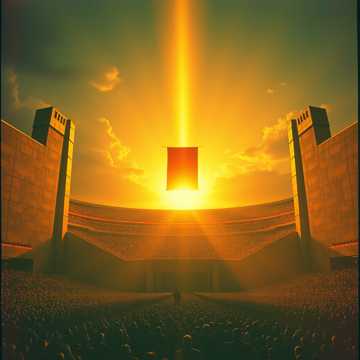 Majestic stadium rock anthem; huge tom-driven intro into soaring guitars and choirs, steady mid-tempo march that erupts in a towering, shout-along hook, Male vocals with stacked gang shouts on the chorus, orchestral brass swells and strings under the final refrain, massive reverb on snares and vocals for heroic scale