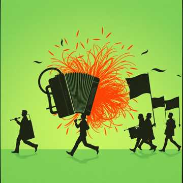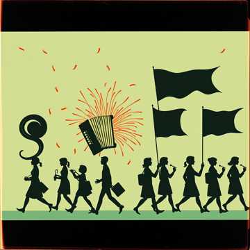 Bracing 2/4 polka at 132 BPM in Em ignites with a distorted accordion riff and palm-muted guitar power chords, Mono tuba lays deep roots and brazen counter-melodies, sidechained with a punchy snare roll and double-kick hybrid kit, The clarinet is hard-panned and offers ascending, anguished pre-chorus phrases, Verses/choruses lock into Em | C | G | D; pre-chorus climbs on Am | Em | F | G, The bridge slows, melting into an Em drone—subby tuba, polyrhythmic rain-on-canvas percussion, and tense textures, The post-bridge drops into wild energy: tuba pitch-bends, roaring bit-crush, relentless blast beats, frenetic polka snare, and swirling 35% tent hall reverb on accordion, Vocals are triple-tracked—yodel, whisper, and scream—feeding into stereo-chaotic choruses, At 1:55, a keytar theremin erupts with a solo, crowd “OOM-PAH!” chants thunder on beats 2/4, and a rain machine intensifies the closing build, all mastered with an extra 1, 2dB of crunch