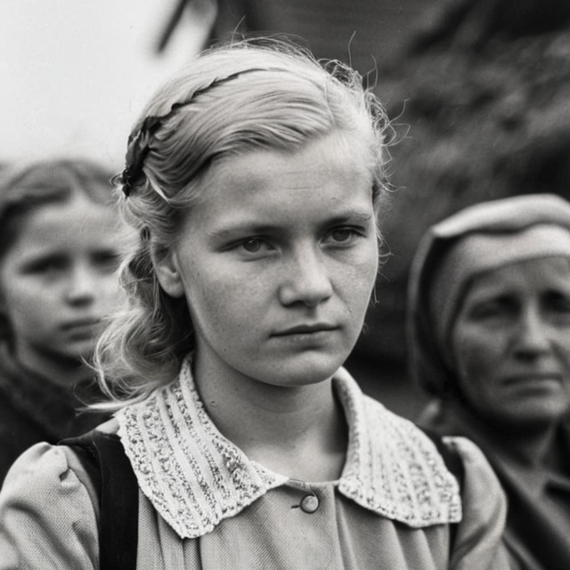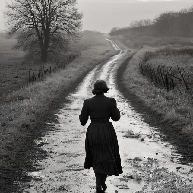 1940s style, Folk or Folk Rock, sad, dark, acoustic guitar, violin, double bass or bass guitar, bodhrán or cajón, harmonica or accordion, flute or tin whistle, A-minor