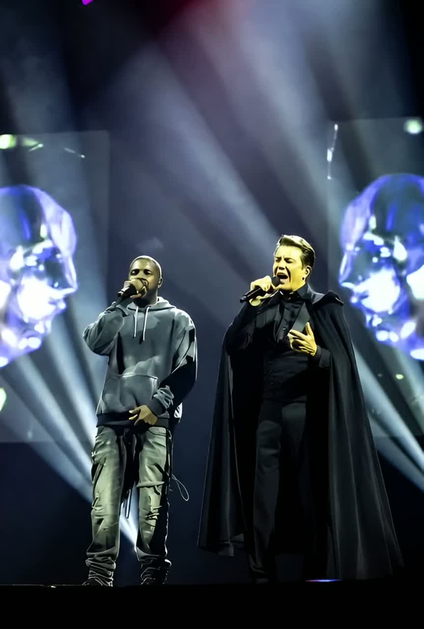 This Rap & Opera Fusion opens with orchestral strings, thunder FX, booming East Coast 808s, and deep sub-bass, Verses: baritone rapper over punchy drums, syncopated rhymes, and brass swells, Choruses: soaring female opera vocals, lush strings, dramatic timpani, The bridge features intense call-and-response, building with cinematic percussion, Final section: piano and lingering strings, washing out on emotive reverb