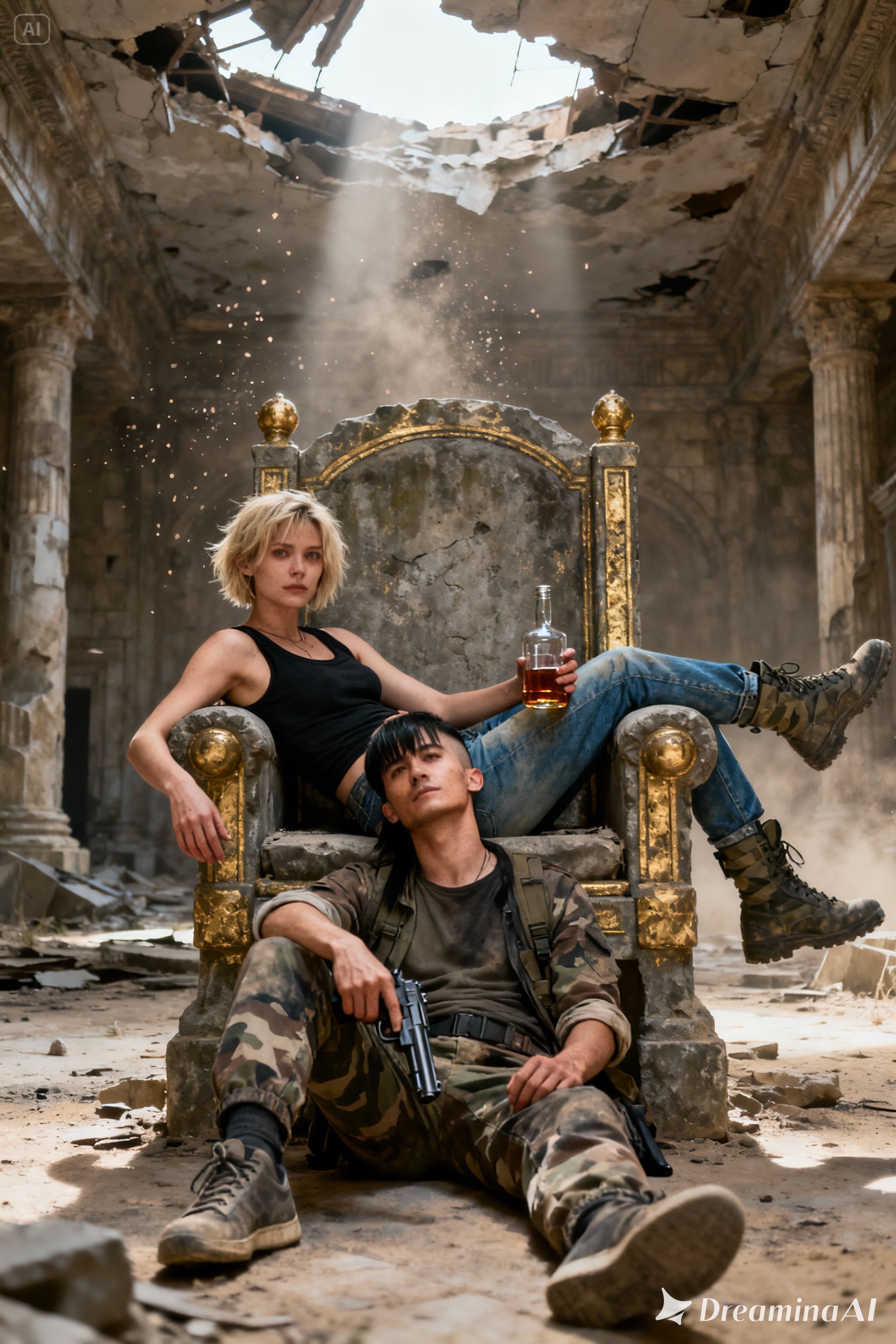 A slow oriental dark rock ballad at 70 bpm opens with vinyl crackle, analog-delay ambient guitars, and soft darbuka, laying a brooding cinematic backdrop, Deep, compressed live bass and warm, low-gain distorted rhythm guitars join, Verses flow with male spoken rap in a European cadence, interplaying with female eastern vocals featuring gentle melismas, Choruses swell—hybrid drums add toms and cymbals, expanding width; atmosphere thickens with glitch FX, Strong low end, dynamic reverb on vocals, and a gradual instrumental crescendo drive emotional tension toward a dense cinematic finale