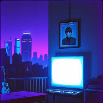 psychedelic j-pop, western electronic folk pop, hololive virtual idol, hypnotic trance, acoustic guitar synth fusion, upbeat, colorful, meta-narrative, glowing, dance pop