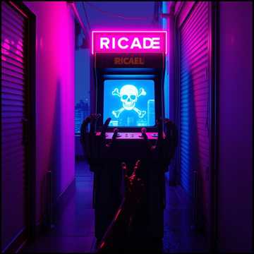 darkwave synth-punk, arcade boss theme, neo-noir cinematic, driving bassline, frantic electronic rock, spoken word interludes, high BPM, dystopian, dramatic climax