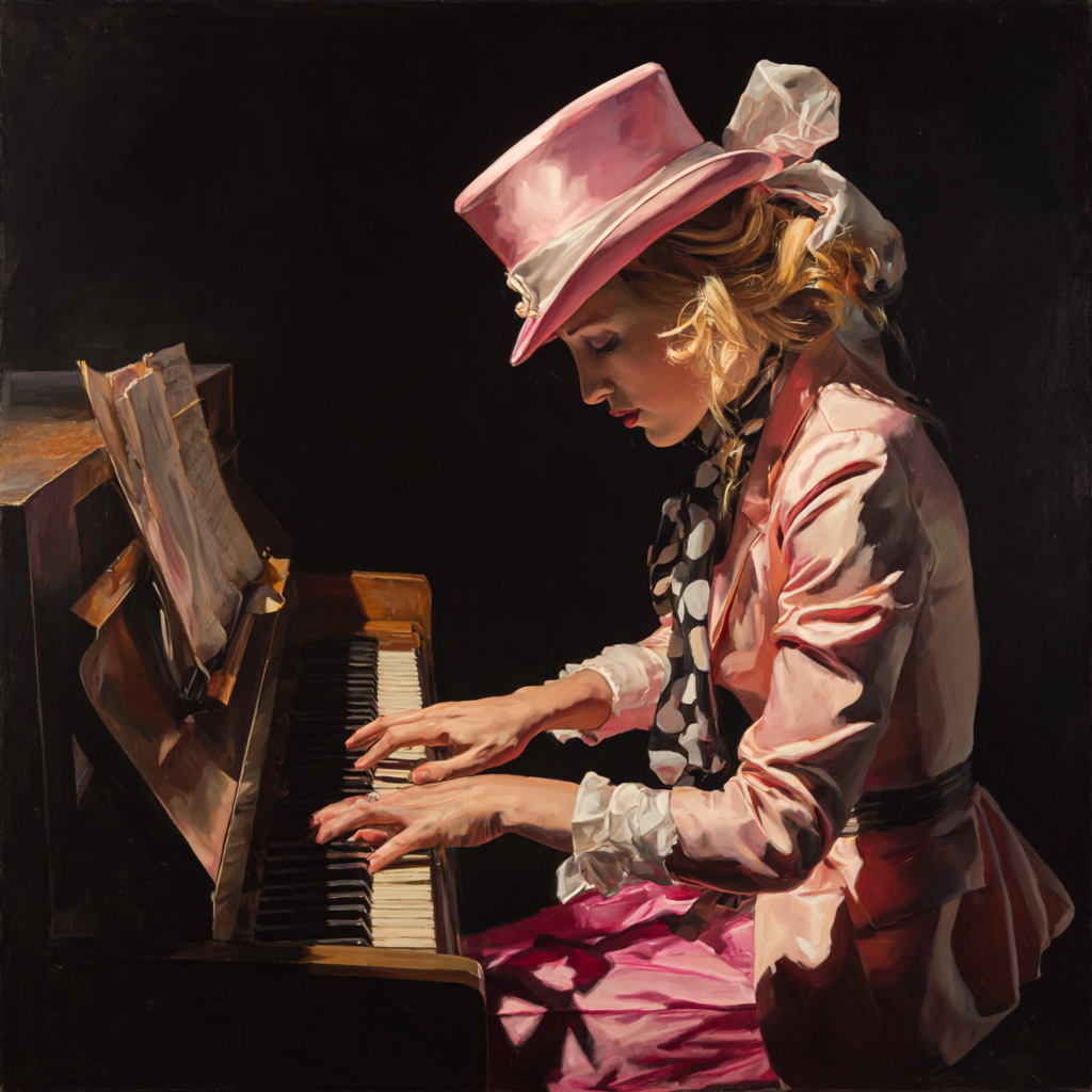 An electric jazz–rock progressive track with multilayered orchestral textures: cosmic FX and sparkly synth stabs interlace double grand pianos in dueling reverbs and frantic, virtuosic arpeggios, Ethnic, metallic percussion and rolling synced drums pulse beneath filtered claps, oboe flourishes, and haunting Russian choirs, Moody Rhodes and electronic bass anchor catchy, syncopated diversions, while pan flute melodies and direct string plucks offer unique timbre, Bold dropouts, dramatic stereo effects, and evolving bittersweet voicings keep the arrangement complex, stylish, and constantly shifting
