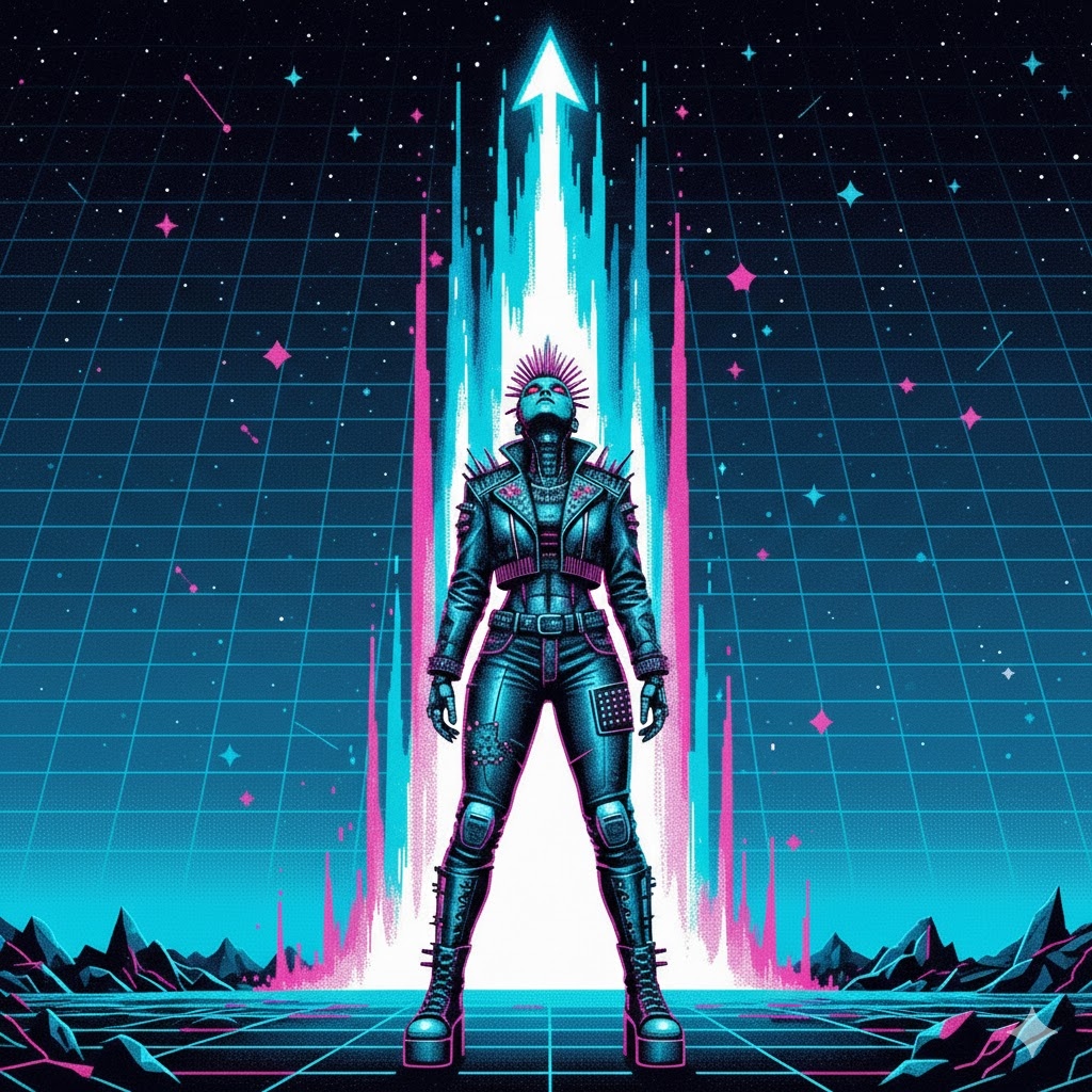 Experimental trippy industrial glam power metal doo-wop hyperpop house ambient, dance, playful, upbeat, heroic, soaring, triumpant, major key, analog synth, grind stutter, LFO on ambient pads, square wave bass, detuned sfx bursts, female yodeling vocals