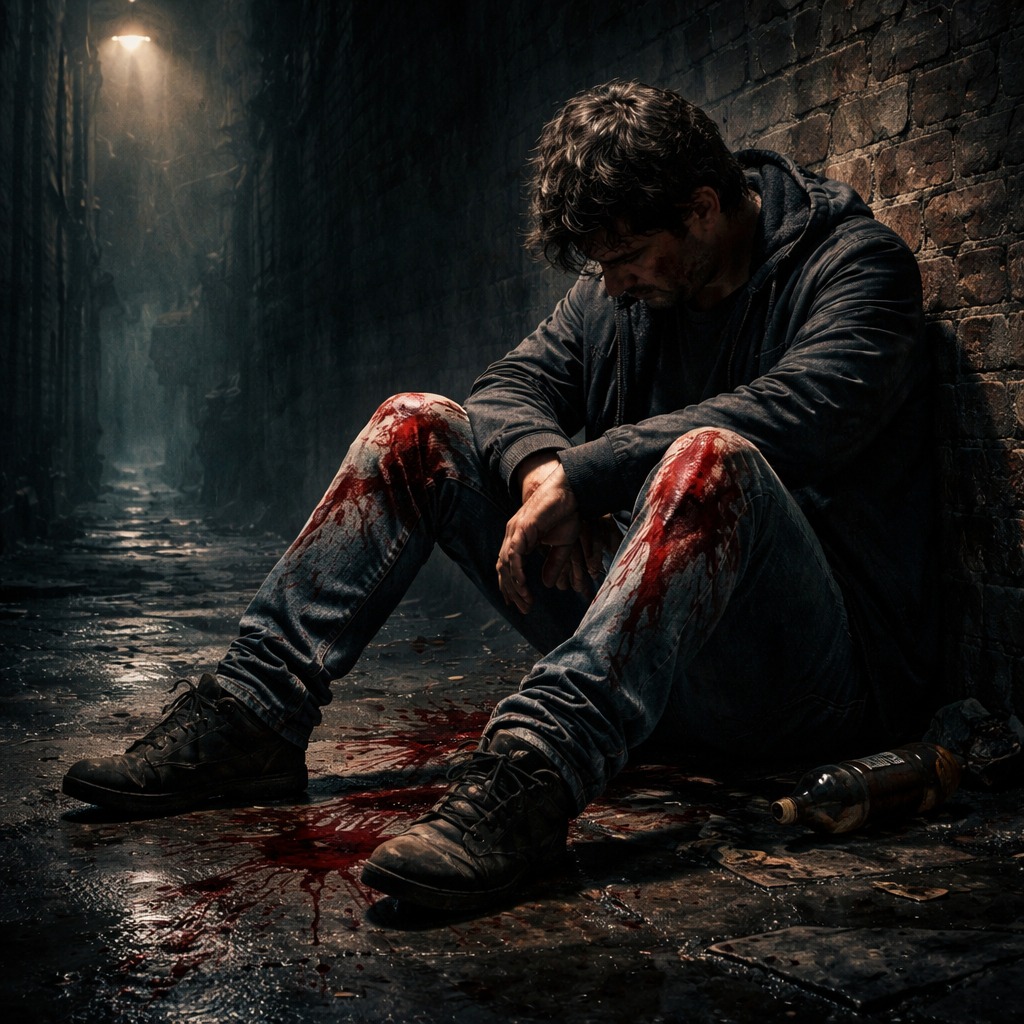 DeathCore, Emo, Breakdowns, Male Vocals, Rock, Dynamic, Eerie Dark Club, Grunge-Step, Heavy Sub-Bass, Opposing Synth Waves, Distorted Electric Guitar, Reverb Electric Harp, Atmospheric Quiet Echoes, Male Gruff Emo Vocals, Rasp Baritone, Near-Scream Delivery, Layered Self-Harmonies, Melodic Rap Edge, Reverb Acoustic Synth, 124 BPM, emotional, cinematic