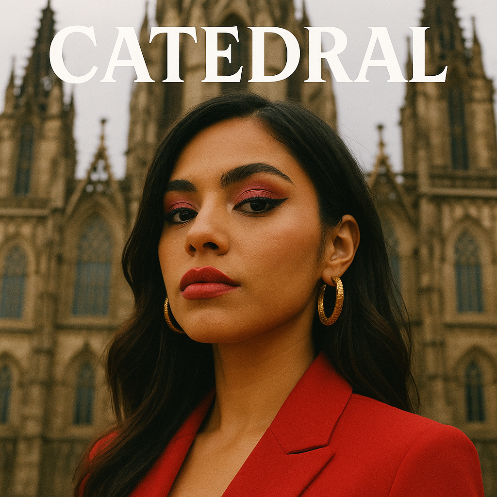 Female, pop banger, Argentinian Music, modern production, Trap latino mid-tempo con bajo oscuro y percusión en vivo; coros himno de 8 líneas repetitivas y dos hooks sorpresa con cambios drásticos de producción (uno minimal callejero, otro épico con cuerdas y coro); atmósfera de ritual entre lo religioso y lo profano