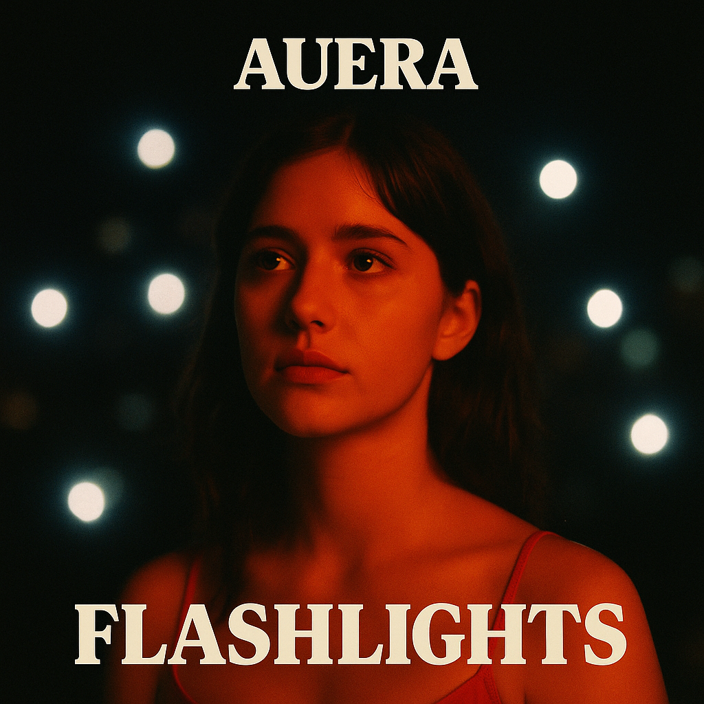Female, pop banger, Argentinian Music, modern production, “Balada synth minimalista con bajo profundo y pulsante, percusión latina sutilísima; voz etérea con reverb largo, alternancia inglés–español; estribillo repetitivo de una sola línea, seguido de un post-chorus mantrico que repite ‘flashlights’ con eco y capas crecientes, ”