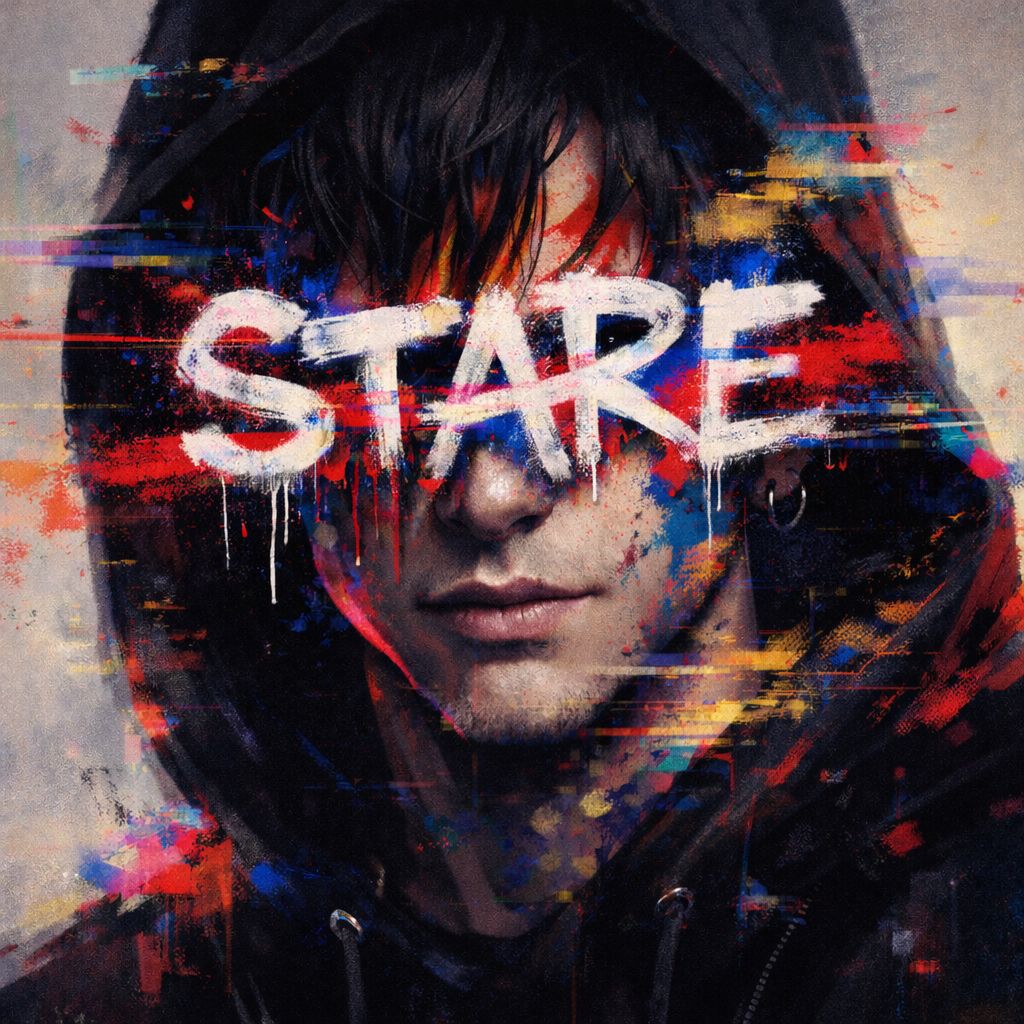 contrast between artificial idol surface and inner psychological collapse, guitar, Bass, Drums