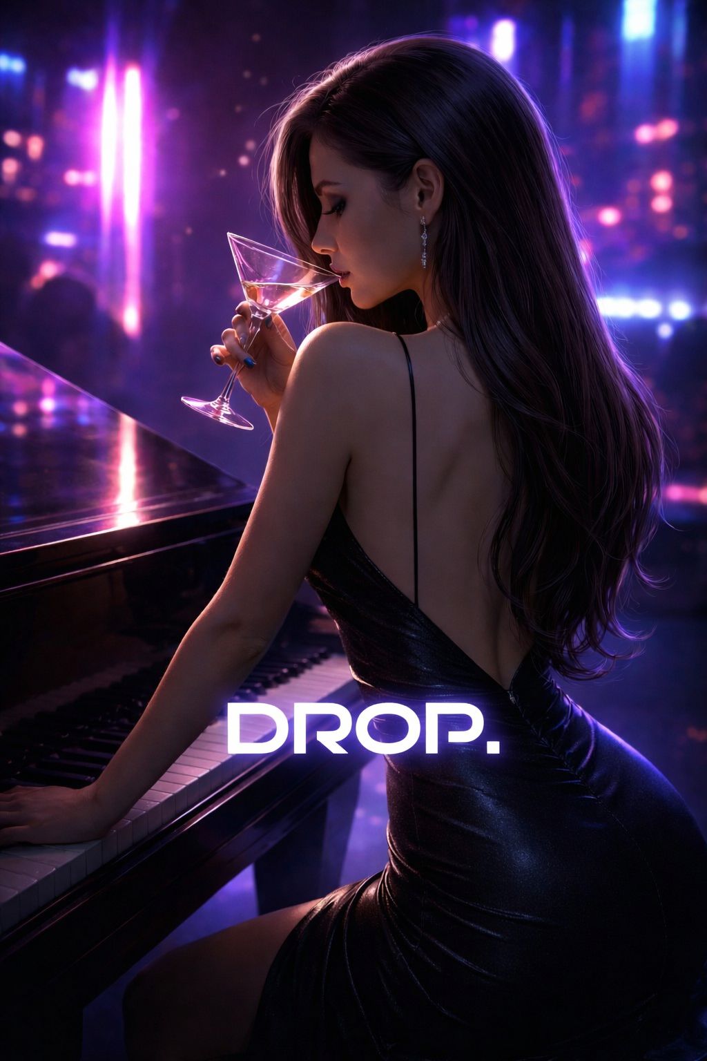 female Japanese vocal, mysterious but slightly warm tone, Japanese pop style vocals, neon club atmosphere, BPM 180, song starts with chorus hook intro, jazz influenced electronic music, electric piano and groovy melodic bassline as main lead, subtle electronic elements, glitch electronic transitions, dark techno groove lightly mixed into the verses, tension building pre-chorus, sudden drum and bass drop as an accent, dynamic genre switching between jazz electronic, techno and drum and bass, final melodic hardcore drop used as energetic climax accent, futuristic nightlife atmosphere, emotional but cool, cyber club sound, electric piano, groovy melodic bassline, no male vocal