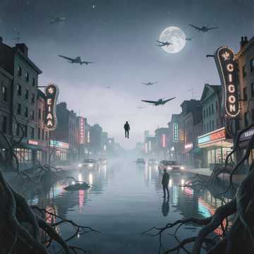 eccentric art pop, dark folktronica, quirky nasal vocals, rhythmic phrasing, plucked guitar, syncopated drums, thick bass, harmonies, multilayers, light spooky, dark night