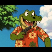 Comedic hip-hop with funky horns, tropical beats, bouncy rhythm, Male rap voice with playful swagger, exaggerated delivery, cartoon gangster style, fun and catchy with attitude