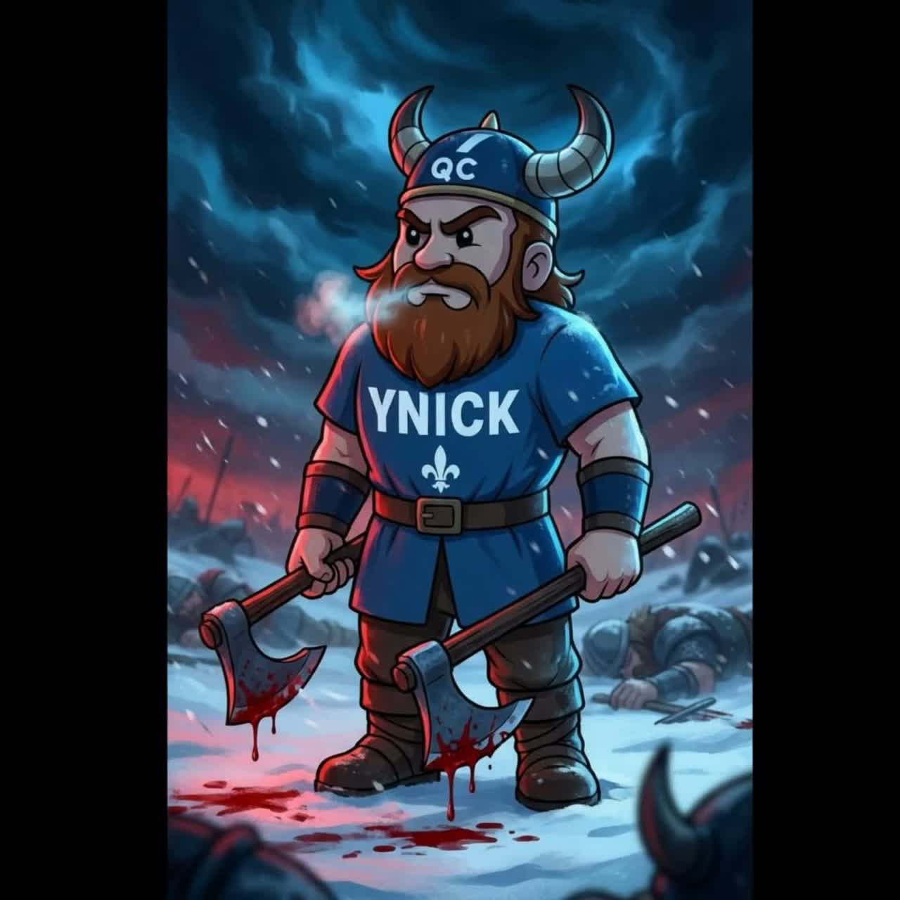 Aggressive Viking-themed melodic death metal track featuring a blend of guttural growls and powerful clean baritone vocals, The instrumentation is dominated by high-gain distorted electric guitars performing rapid tremolo picking and heavy palm-muted rhythmic chugging, The drums utilize intense double-bass patterns and explosive blast beats with a crisp, modern production style, The song structure follows a traditional metal arrangement with a soaring, anthemic chorus and a technical guitar solo featuring melodic phrasing and rapid-fire runs, The key is in a dark minor tonality with a fast, driving tempo, Orchestral layers including cinematic strings and brass provide a grand, epic atmosphere in the background, The mix is dense and punchy, with the vocals sitting prominently above the wall of sound