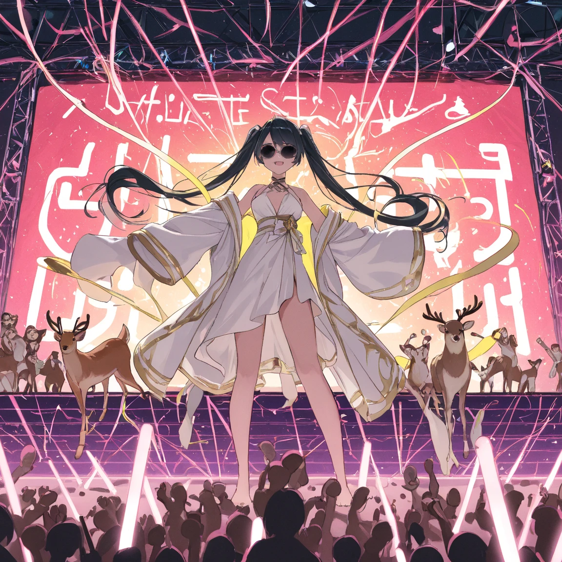 Dark pop track with cute and twisted Yandere idol vibe, High-pitched "moe" voice a playful and humorous mood, The instrumentation should feature synth-based dark pop sounds with a strong beat, bright synths, and heavy bass, combined with Japanese traditional instruments (koto, shamisen, taiko drums, shakuhachi, gagaku-style effects) processed with reverb, delay, and glitch effects for a modern twist, Verses: Sung in Japanese with a light, playful tone, Chorus: Very catchy, repetitive, and easy to sing along (“アマテラス!アマテラス!” style hook), Rap Part: Japanese rap with high energy, humorous, and a bit cheeky, fitting the story of Amaterasu hiding and returning, Mood: Dark pop, but not too heavy — bright, humorous, and slightly mischievous, Theme: Retelling the myth of Amaterasu with a modern, fun twist, The chorus should feel like an anthem, simple enough to repeat and stick in the listener’s head, Keywords / Vibe: Amaterasu, Japanese mythology, catchy pop chorus, playful rap