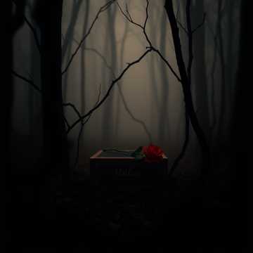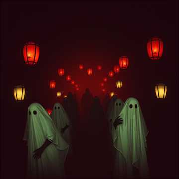 A dark, eerie Japanese horror atmosphere, Very slow tempo, around 1 minute, Use deep resonating bells and Tibetan singing bowls, haunting taiko-style drum hits, and the sorrowful plucking of a biwa, The sound should feel oppressive, ominous, and unsettling, like a haunted temple or cursed forest at night, No vocals, purely instrumental, Focus on tension, silence, and echo to create a chilling ambience