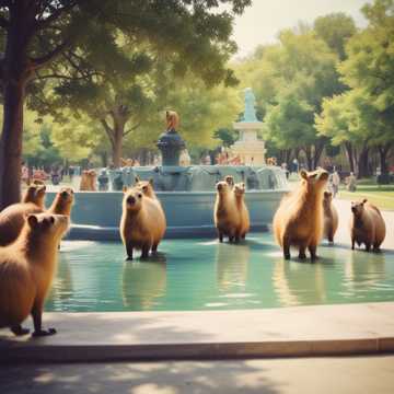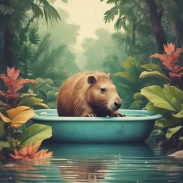 アニメ・コメディソング (『ポプテピピック』風), 男女デュエット(テンション高め), ファンキーなベース, 8bitサウンド効果, 190BPM, 突然の音楽チェンジ(ロック→演歌→EDM), 歌詞はカピバラが社会を征服する内容, 参照:『よふかしのうた』OP, 『てさぐれ!部活もの』, 『ピーチボーイリバーサイド』, 追加: ・効果音(「ドカン!」「きゅーん」) ・背景の叫び声(「やばい!」「カワイイ