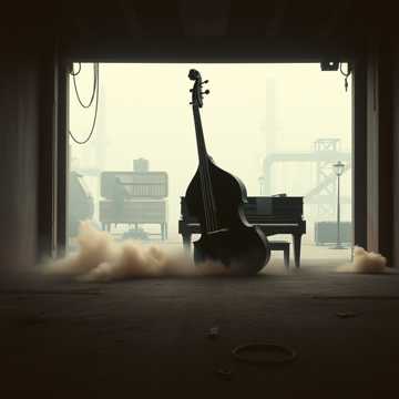 [Instrumentation: Textures are the lead, Heavy use of atmospheric drones, low-frequency hums, and industrial sounds (distant sirens, echoing footsteps, radio static, creaking metal), A solo trumpet (muted, distant, mournful) and a solo saxophone (breathy, fatigued, melancholic) are used sparingly as emotional accents, not melodic leads, Sparse, deep piano notes (prepared piano), Cold, scraping strings (cellos, double basses), Pulsating, minimalist electronic percussion resembling a heartbeat or a distant generator, ]