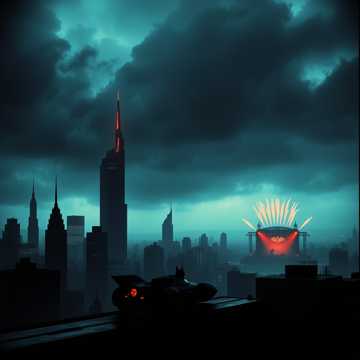 Epic dark orchestral/electronic festival banger, 85 BPM building to 128, Two-note brass/trombone motif (Batman pain), fluttering string wingbeats, distorted Joker supersaws chaos, massive 808 sub chase drops, boys soprano choir flashbacks, pyro orchestral risers finale, Deep male auto-tune rap narrative + epic female choir stacks + 50k crowd screams, Full trilogy atmosphere: cave origins → Gotham street chaos → rooftop/mainstage pyro ascension, relive Batpod chases, interrogations, Bane explosions, eternal Bat-Signal