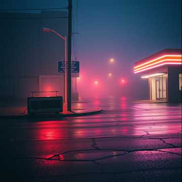 [Genre: Dark Ambient, Cinematic Drone] [Style: Apprehensive, solitary, cold, The beginning of a long shift, A deep, humming drone with a slow, heartbeat-like pulse, A muted trumpet plays a simple, repeating motif that sounds both lonely and vigilant, Sounds of a distant police radio scanning channels, the engine of a cruiser idling, The atmosphere is heavy with the anticipation of the unknown, ]