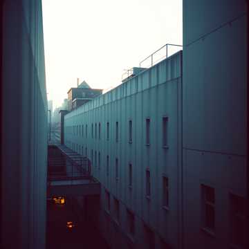 Brutal industrial ambient meets delicate field recordings, concrete poetry spoken through granular synthesis, 94 BPM broken techno rhythm deconstructed into pure texture, amplified urban sounds as primary instrumentation, subway rumbles transformed into bass drones, construction site percussion with microsecond precision, human breath heavily processed into architectural spaces, prepared piano strings struck with metal objects, modular feedback loops creating organic chaos, binaural recording techniques for immersive depth, vocals treated as raw material for sound design, contact mics on city infrastructure capturing hidden vibrations, melodic fragments buried under layers of noise then suddenly revealed, harsh noise walls contrasting with moments of crystalline clarity, lo-fi cassette degradation as aesthetic choice, experimental beat science, urban archaeology through sound