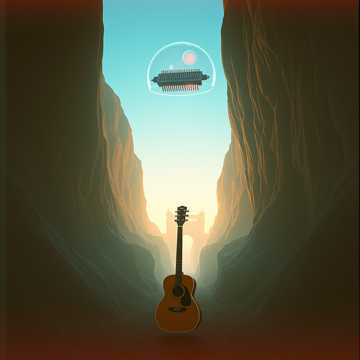 7-minute instrumental space-western electronica, 108 BPM, Lead instrument: quantum psaltery—glitch-tuned medieval strings clash with cosmic reverb, Glitchy acoustic guitar spirals into cathedral synth swells, taiko thunder under harmonica ghost cries, Structure: 0:00-1:30 cyber-canyon dawn (psaltery + guitar tension build), 1:30-3:00 quantum ghost town traversal (synth/taiko drop), 3:00-4:30 nebula sunset pedal steel prayer (half-time melancholy), 4:30-5:45 twin suns horizon chase (double-time electronica fusion), 5:45-7:00 cosmic coyote fade (psaltery returns to silence), Cinematic, transcendent, no vocals—pure emotional narrative