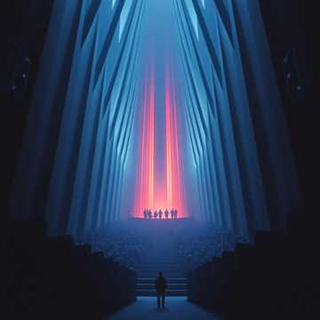 This post-rock opus opens with a looping, haunting piano motif over subtle electronic textures, drawing the listener into an uneasy stillness, From 1:30, detuned guitar swells and string quartet enter, building tension with intricate layers and tribal percussion echoing in the distance, At 3:30, the soundscape collapses—textures fractured and sparse—then reverses course: sounds unfurl backwards, melodies drifting like dissolving memories, At 6:00, guitars and strings unite in a dense, cinematic crescendo, textural grandeur peaking, In the final half-minute, a male vocal emerges, stretched and ghostly against a swirling vortex of sound, closing on a paradoxical, festival-sized wave of unresolved wonder