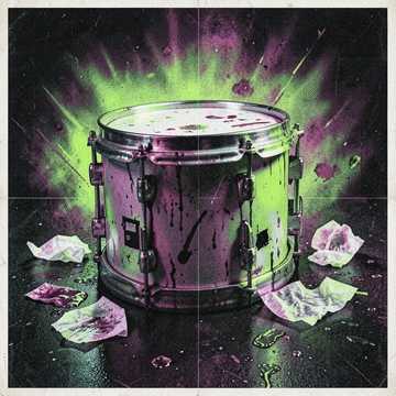 Blistering punk guitars explode over rapid-fire drum and bass beats, punctuated by distorted basslines and gritty synth stabs, Verses feature shouted vocals with minimal backing, while choruses unleash full-force energy, A frenzied breakbeat bridge leads to a chaotic, high-octane finale