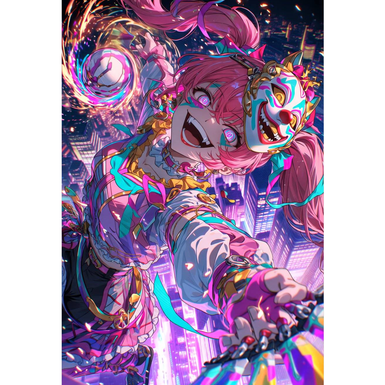 Melodic Drill House track with pulsing 4x4 808s, energetic eurodance synth leads, and syncopated UK drill–style drums, Bright K-pop synths, airy vaporwave chants, and hazy phonk atmospheres weave through transitions, Noisy disco textures and rapid percussive stabs swirl in, driven by roaring techno and house rhythms, Acidic 303s erupt in drops and bridges, then subside to anthemic hooks with UK garage and pop touches, Aggressive pads and chorus-soaked vintage drum synths dominate, while verses balance gritty noise and dreamy layers, The outro erupts: dense synths and field recordings create a rich, dystopian finish