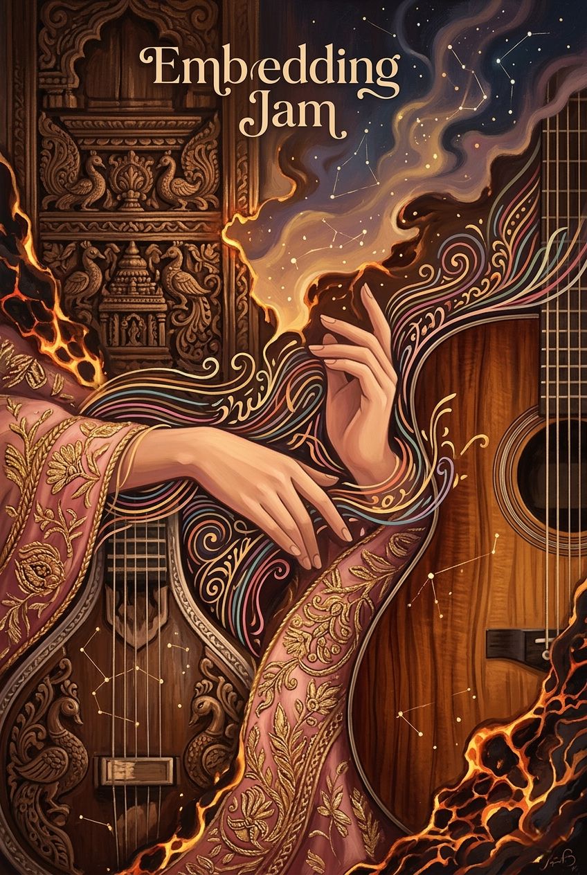 An Indian Pop track based on a minor-key Raga, Features a lush arrangement of Veena and acoustic guitar, The percussion is a light, modern Tabla-pop rhythm, Vocals are highly melodic and decorated with complex "taans" (fast melodic runs) and "meends" (glides), The production is clean and acoustic-focused with a romantic, breezy feel, 110 BPM