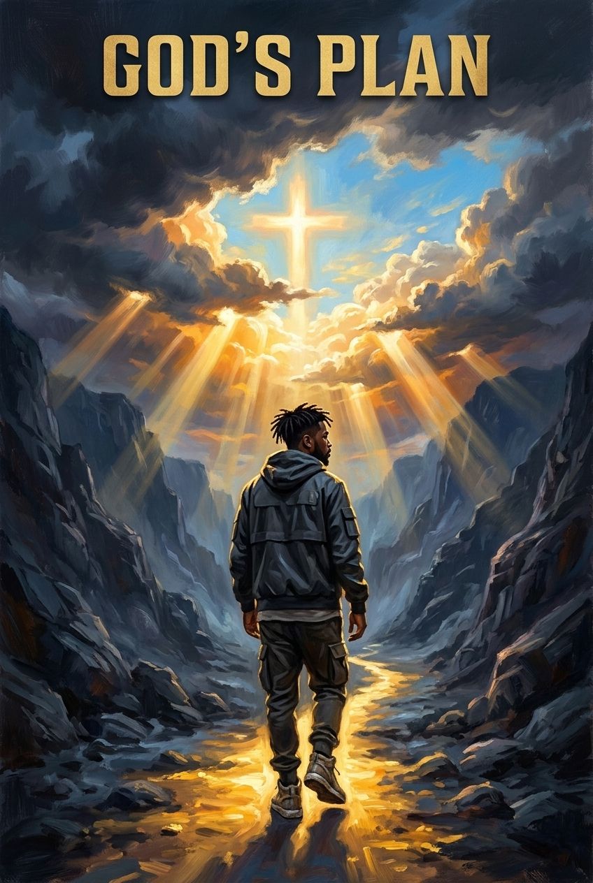 Inspirational gospel hip-hop song with uplifting choir background, emotional piano, warm organ chords, and modern trap drums, Male lead vocal with soulful delivery, choir harmonies in the chorus, powerful and uplifting vibe, Similar energy to contemporary gospel mixed with hip-hop, Tempo around 85–95 BPM, Theme: faith, perseverance, trusting God’s plan through struggles