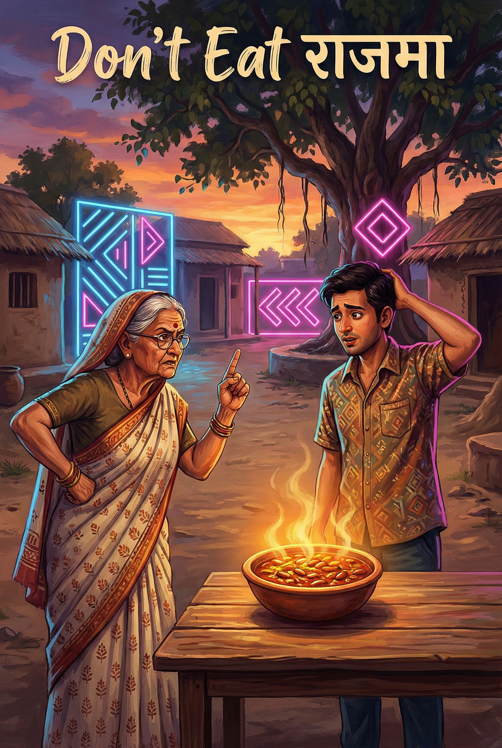 Desi Hip-Hop, K-Pop structure, Heavy Phonk Bass, Traditional Bansuri (Folk Flute) hooks, Comedic Satire, Male Vocals with aggressive "Dadi" background ad-libs, 110 BPM
