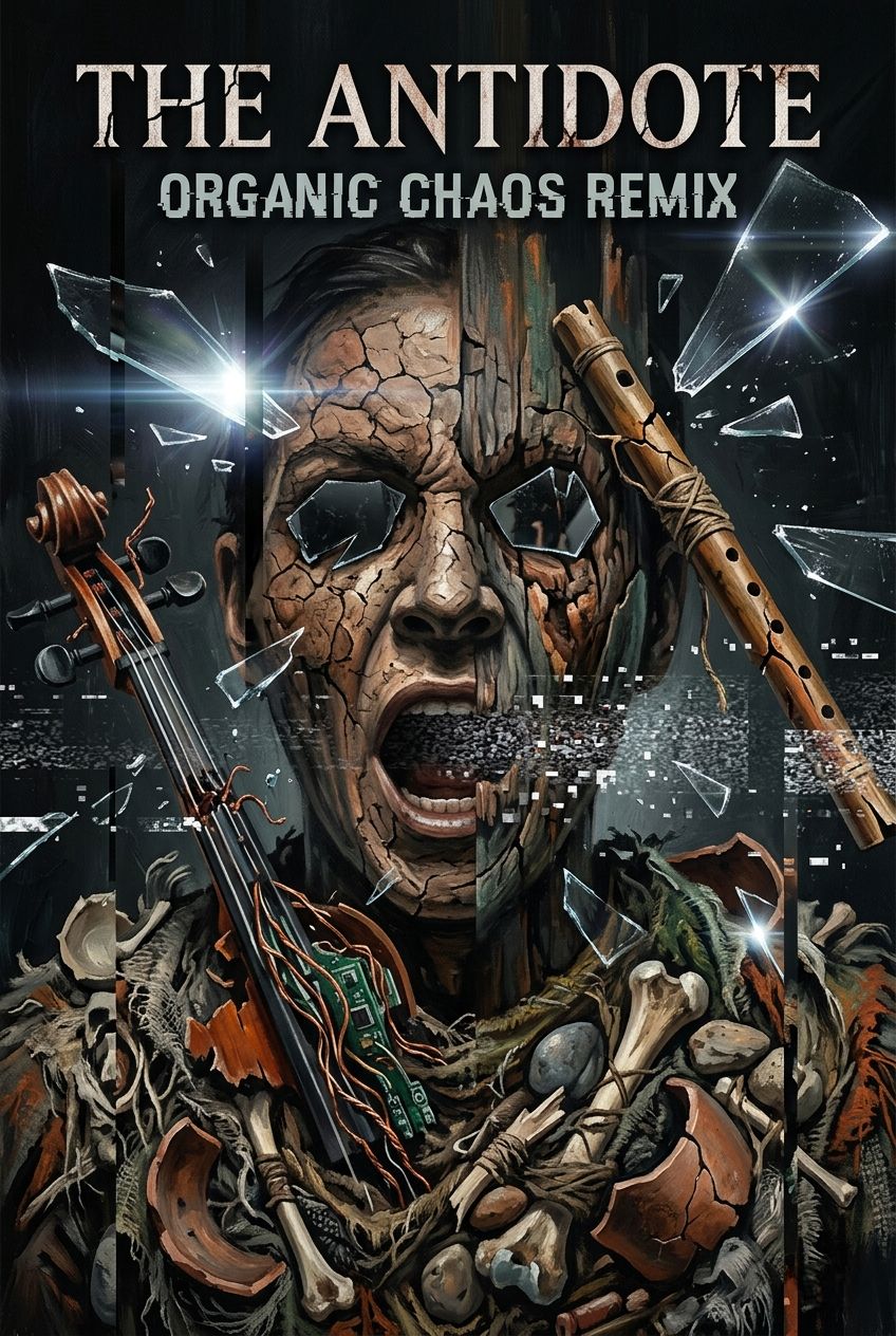 Experimental Folk-Electronica fusion, Stuttering cello plucks, tribal percussion, field recordings of shattering glass, distorted flute melodies, 120 BPM but with a broken, syncopated rhythm, The vocals are dry and intimate, suddenly interrupted by bursts of white noise and feedback, Raw, organic, and deeply unsettling
