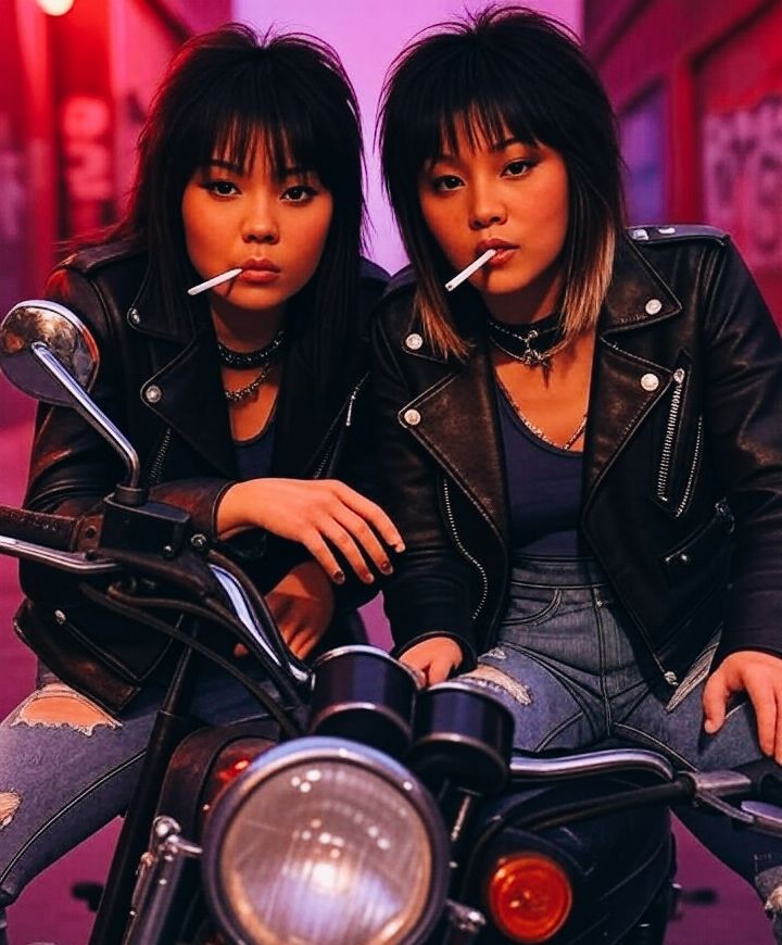 Create a high-energy, rebellious 80s punk rock anthem with gritty electric guitar riffs, driving drums, and a raw, defiant vocal style, The song should feel bold, edgy, and empowering, with a catchy chorus that screams attitude and independence, Think leather jackets, late-night city vibes, and a fearless, in-your-face energy, Lyrics should evoke a sense of breaking free, living on the edge, and embracing a bad-girl/bad-boy persona, Electric guitar solo, raw female vocals