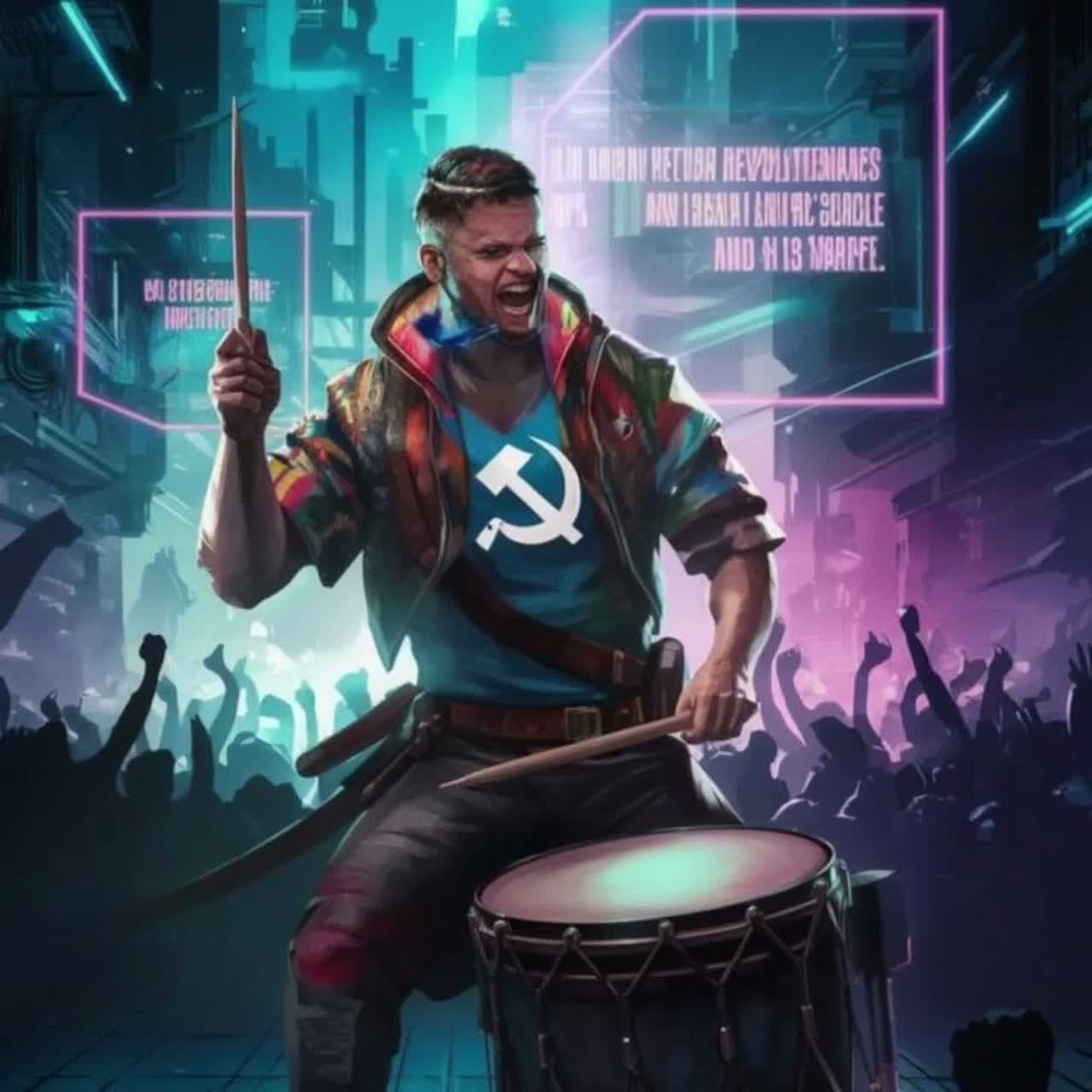 cyberpunk, dystopian, atmospheric, dark, synthwave, bard, male singer