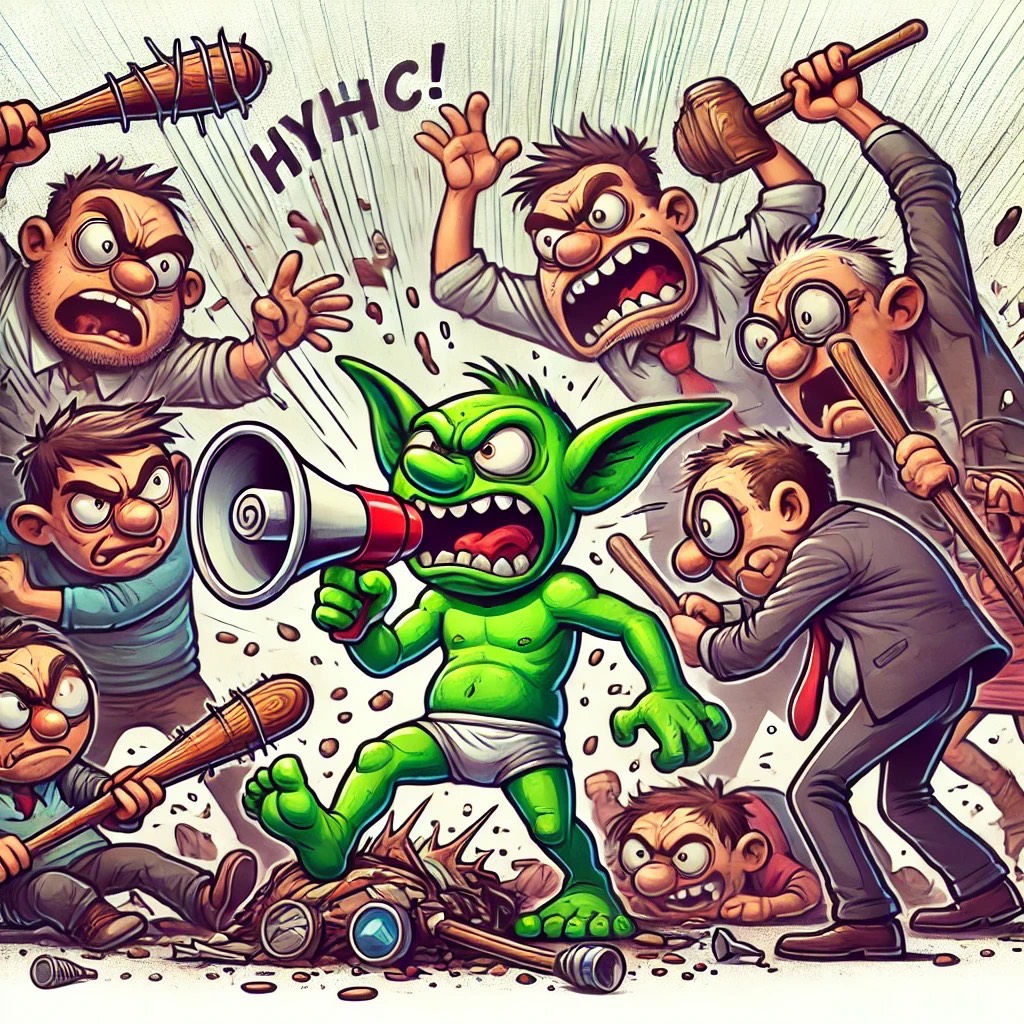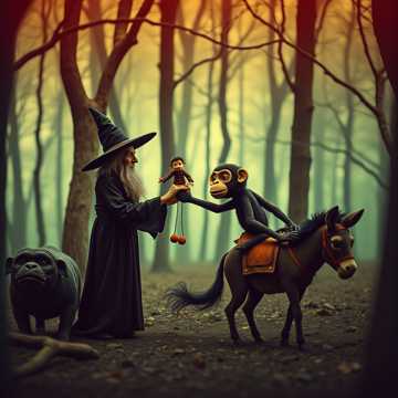 humorous and theatrical tone, with a lively, jaunty rhythm and a satirical edge, evoke bustling atmosphere, slightly chaotic setting, quirky characters, mischievous fun, master of the house style