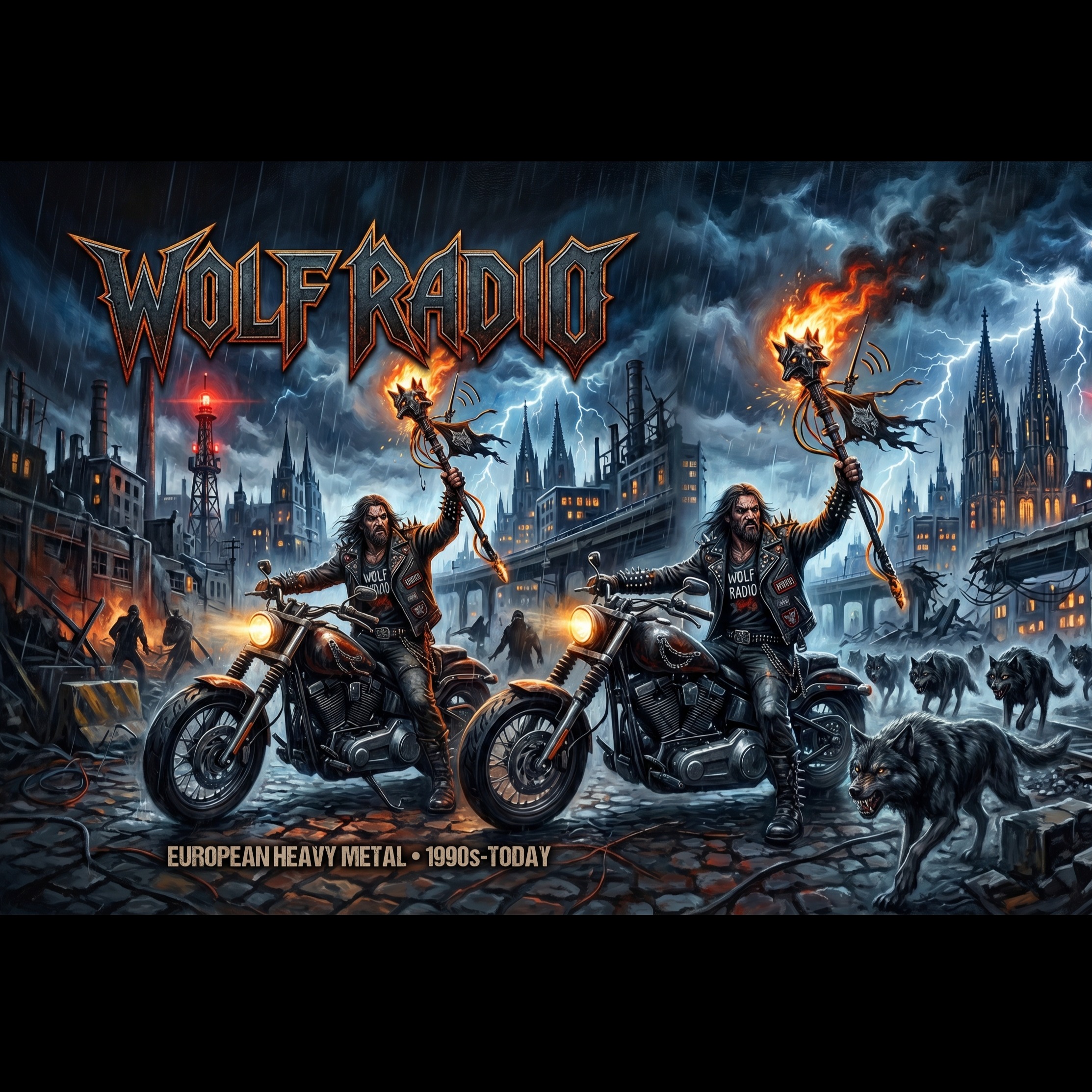 European underground heavy/speed metal from the 1990s to today, inspired by obscure but vibrant continental steel without copying any single band, Title: Wolf Radio, Key: F# minor, Tempo: 158 BPM, Use tight 4/4 drums, galloping rhythm guitars, twin-lead harmonies, melodic bass that stays clearly audible, and a sharp, cold, analog-grit mix, Vocals: forceful male tenor with grit, urgency, and a strong anthemic chorus lift, Mood: nocturnal outlaw metal, radio towers, border roads, wolves, chrome rain, black mirrors, electric winter, Arrangement: tense intro, riff-heavy verse, rising pre-chorus, explosive chorus, second verse, bridge, melodic solo, final double chorus, defiant outro, Dark, vivid, heroic, fast, underground, and faithful to true European metal spirit, Night-drive steel assault!!