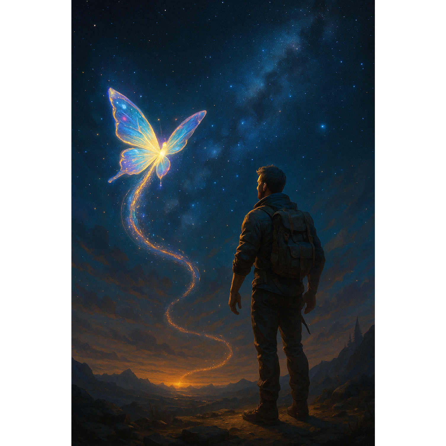 A gentle Avant-garde - indie - acoustic duet between a bluesy male and melancholic female voice, Cinematic and dreamlike, with soft guitar, ambient textures, and butterfly-themed, heartfelt emotion