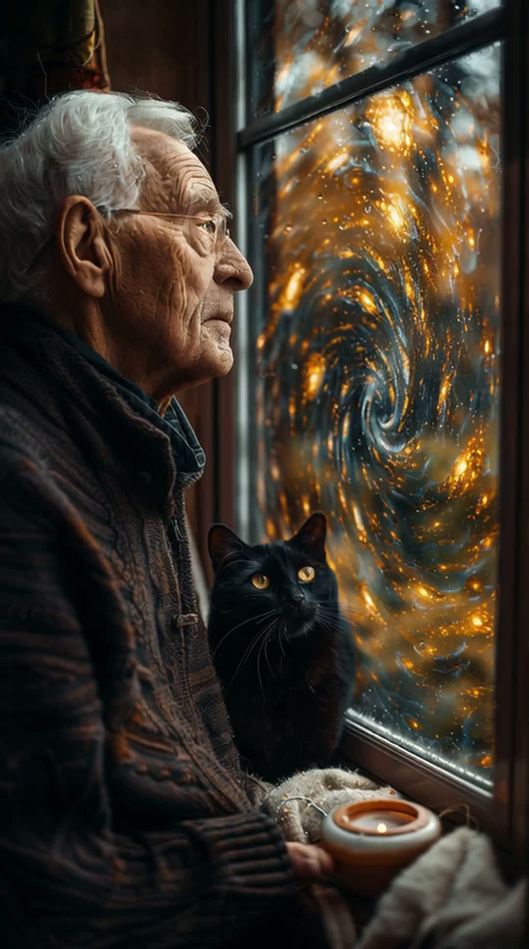 A mythic yet tender acoustic folk lament, in the spirit of Harry Chapin’s 'Cat’s in the Cradle, ' Fingerpicked guitar, warm male vocal with gravelly depth, soft piano and subtle strings, Porchlight warmth meets bittersweet reflection, Themes: porchlight glow, Bastet’s cradle, missed moments, digital sky, hope for reconnection, Tone: porchlight warmth, mythic lament, peace offering to family