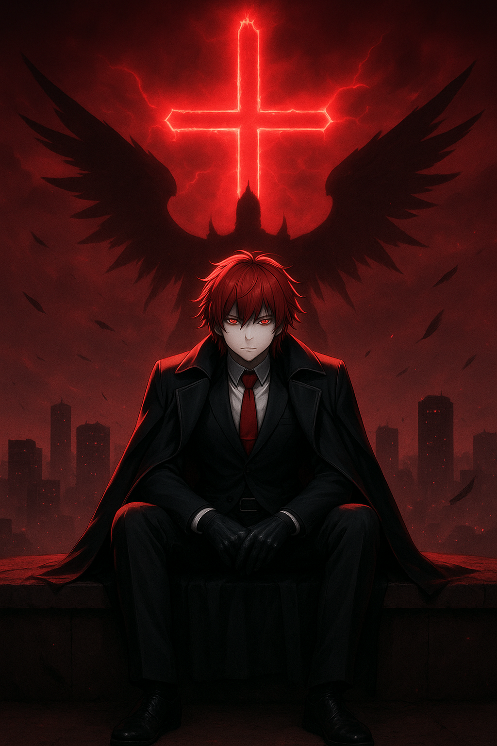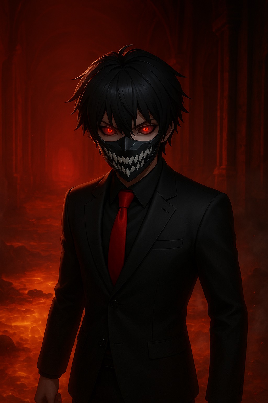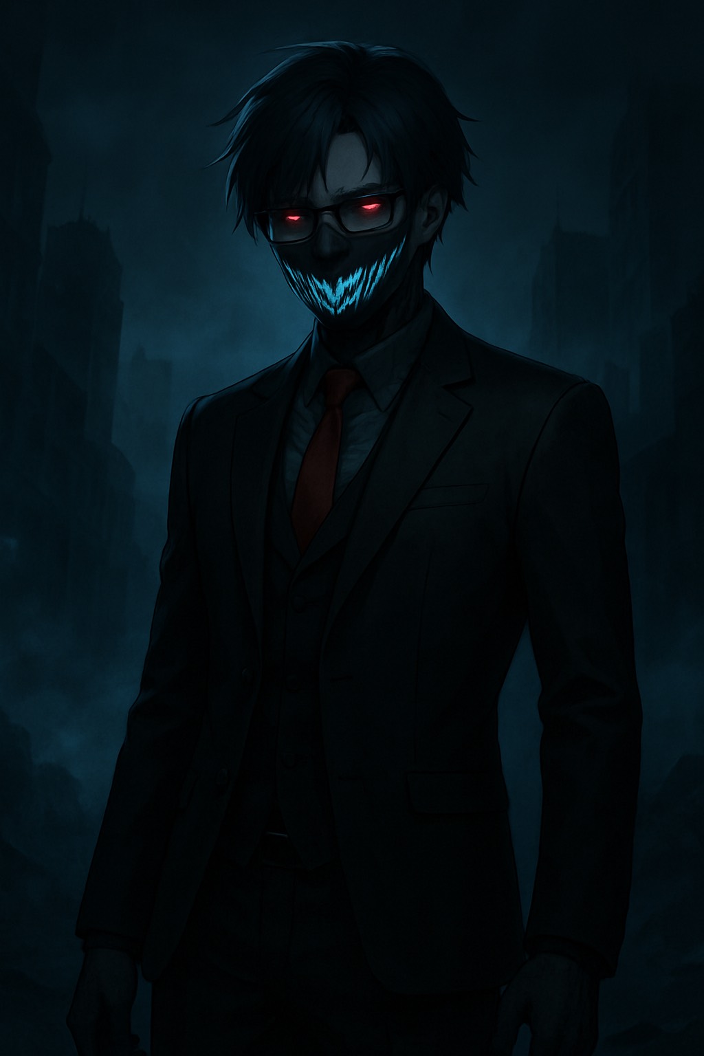 [Genre: Dark Glitchstep x Doom Riddim x Cinematic Gothic Midrange Gun Bass, Style: Demonic robotic male vocaloid, distorted low vocals, Mood: Heavy, oppressive, cursed, [Concept: