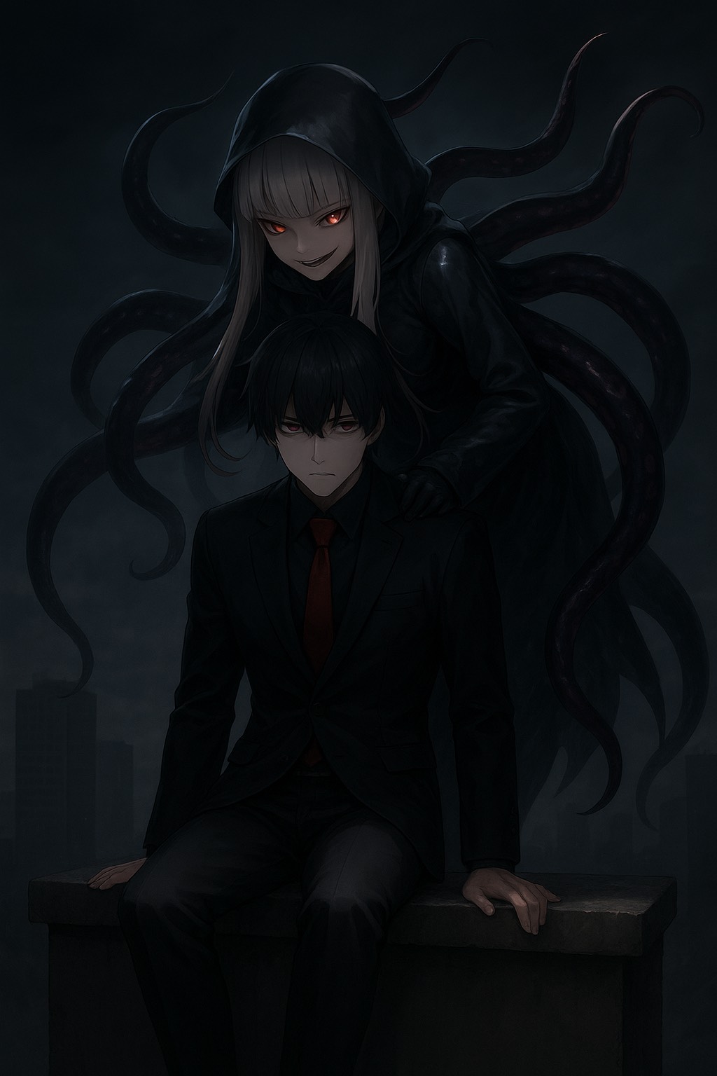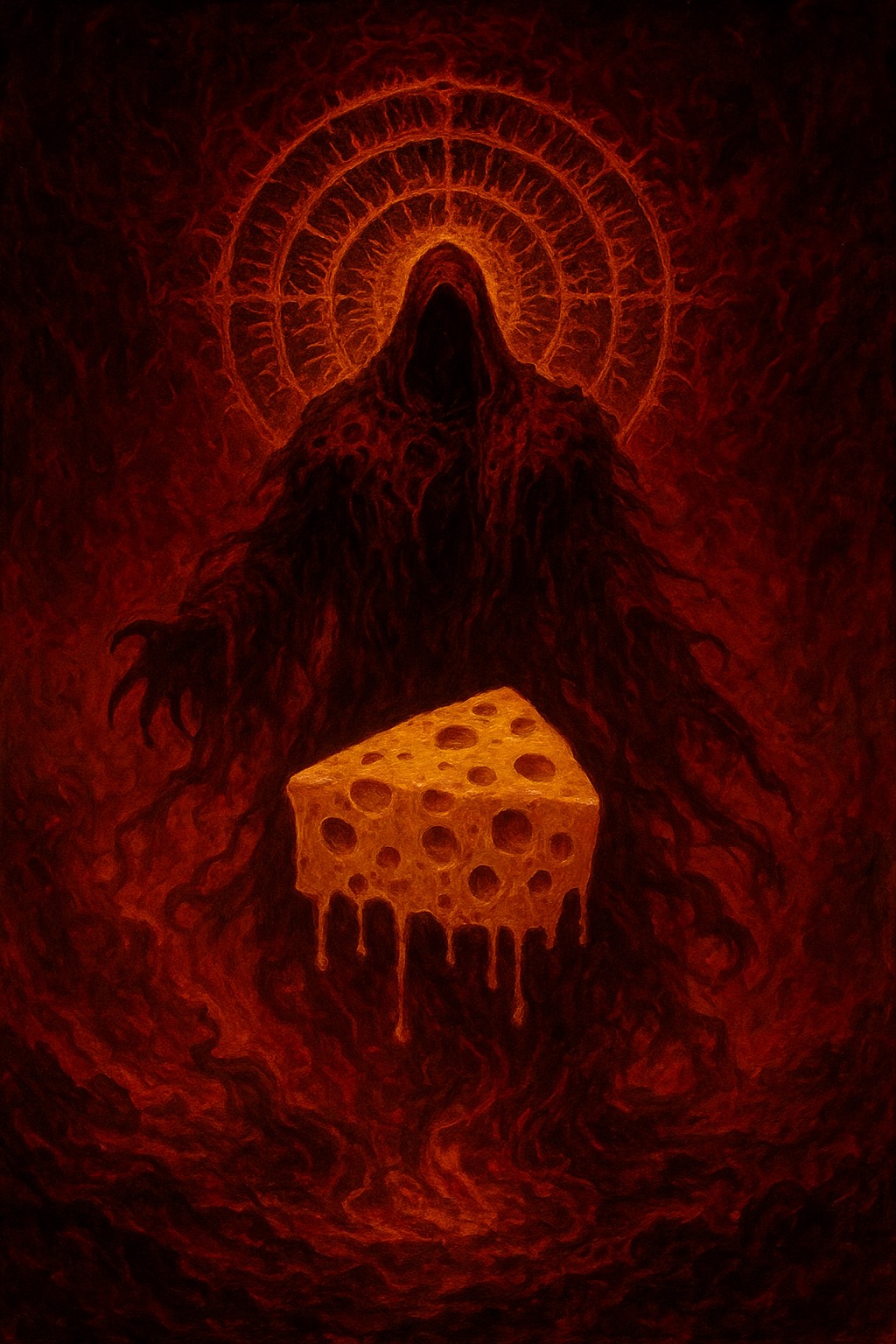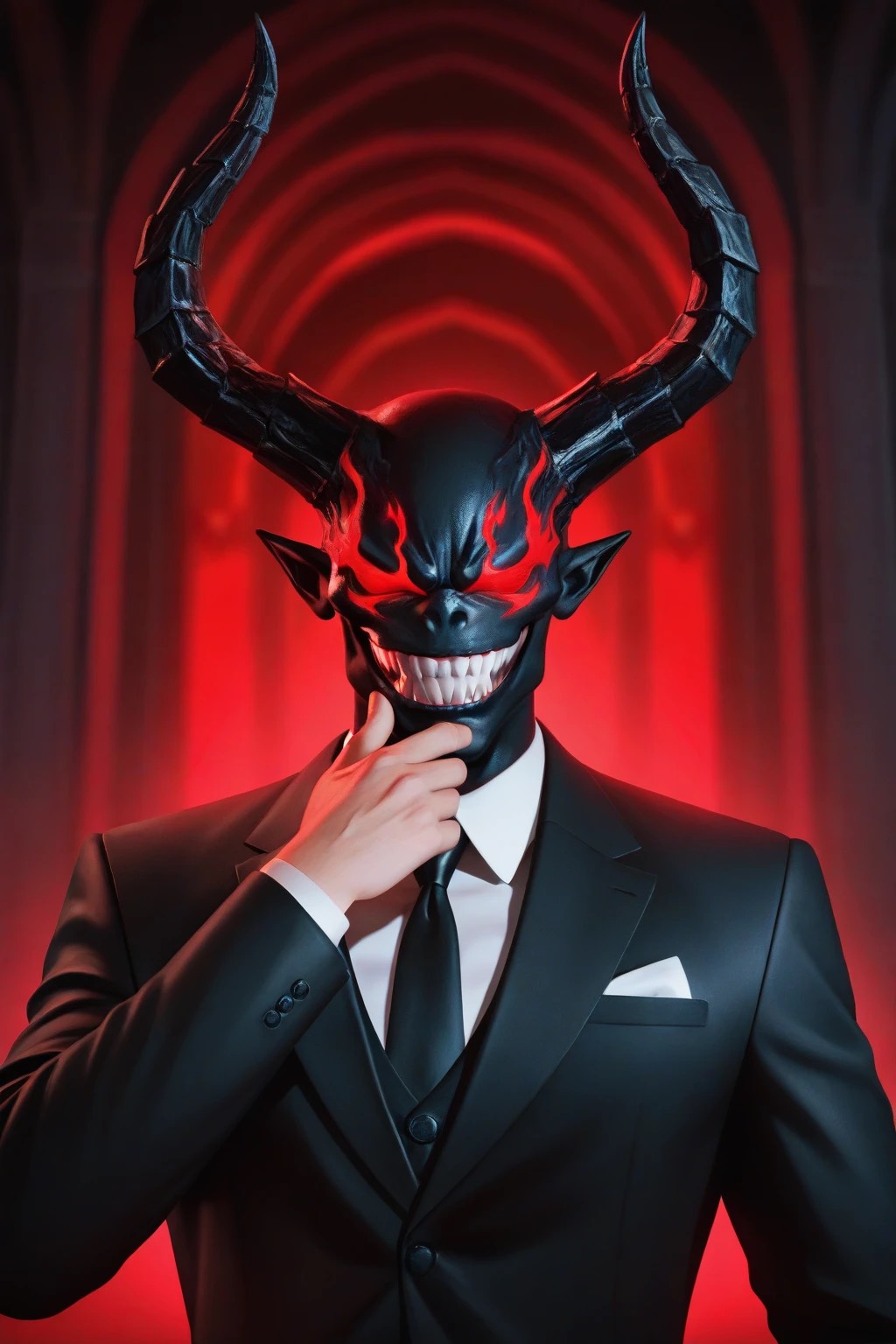 [Genre: Dark Glitchstep x Doom Riddim x Cinematic Gothic Midrange Gun Bass, Style: Demonic robotic male vocaloid, distorted low vocals, Mood: Heavy, oppressive, cursed, [Concept: