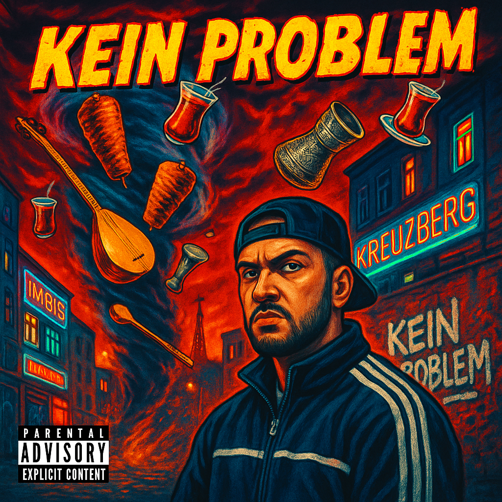 Experimental Deutsch Rap, dรผstere Beats mit orientalischen Samples, treibende Percussions, mรคnnliche Stimme Deutsch mit starkem tรผrkischem und Berliner Akzent, Baฤlama und Darbuka nur im Beat Drop