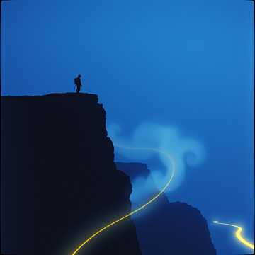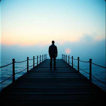 [Style: Blues, Jazz, R&B, male vocal with a thoughtful and smoky tone, walking bass, light brushed drums, atmospheric synthesizer pads that duet with the vocal, intimate and philosophical mood, The first part of the song is blues, jazz, and R&B in style until the final bridge, In the first part, there are only light drums, a full-bodied bass, and a keyboard with a synthesizer that duets with the vocals, In the second part of the song, from the final bridge onward, it becomes rock-blues and jazz, The drums become more intense, and the electric stratocaster guitar with a slight echo enters with a series of chords, then takes on an epic, emotional solo, ]