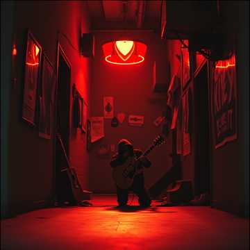 [Blues rock guitar-driven song, melancholic yet hopeful, featuring soulful, singing lead guitar with expressive finger vibrato, smooth bends, and subtle whammy bar nuances, Warm, clean rhythm chords provide a solid foundation, supported by a steady bassline and relaxed drums, Include psychedelic ambient textures and volume swells to create an atmosphere of endless rainy nights and neon-lit city streets, The vocal performance features a deep baritone voice with significant range, emphasizing emotional resonance in the lower and mid registers while employing smooth falsetto rather than high belted notes for any upward melodic movement, ]