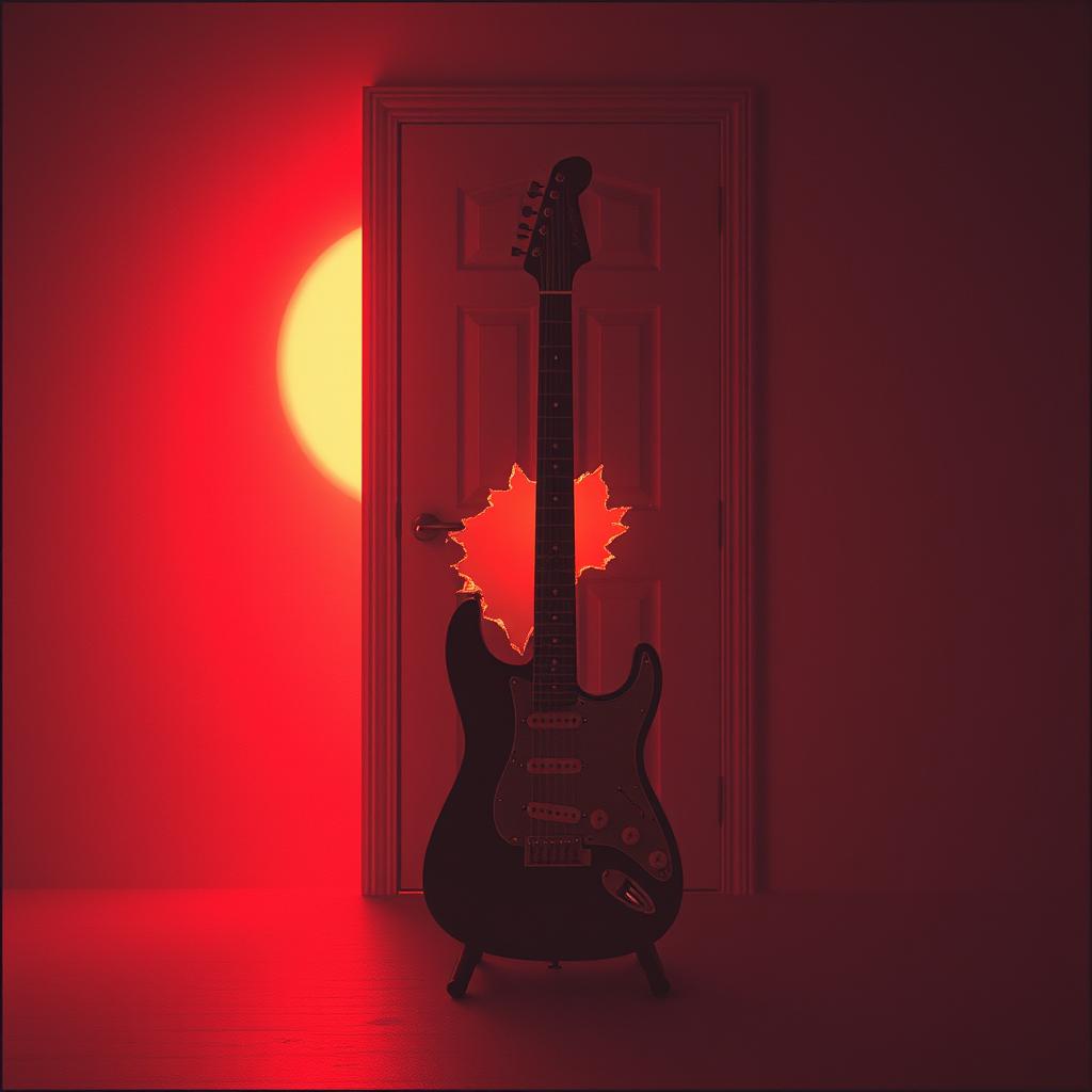 [Soulful, melodic rock song emphasizing sophisticated harmonic development rather than traditional blues structures, Lead guitar features expressive phrasing with smooth bends, vibrato, and melodic development within complex chord progressions that incorporate extended harmonies, modal interchange, and unconventional resolutions, Warm, clean rhythm guitar provides foundation through rich chord voicings rather than standard blues progressions, Steady bassline and drums with syncopated fills and counter rhythms maintain forward momentum without shuffle or traditional blues patterns, Tenor saxophone contributes melodic counterpoint, soulful fills, and call-and-response passages with the lead guitar, Include atmospheric textures, subtle delay effects, and volume swells to create an introspective, nocturnal mood, ]